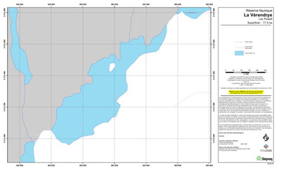 Carte de lac de la Sépaq. Selon les données disponibles, la carte peut présenter diverses informations telles que la bathymétrie ou les sites favorables à la pêche.