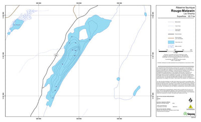 Carte de lac de la Sépaq. Selon les données disponibles, la carte peut présenter diverses informations telles que la bathymétrie ou les sites favorables à la pêche.