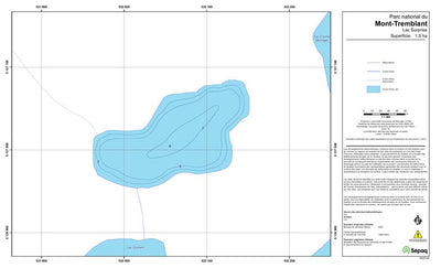 Carte de lac de la Sépaq. Selon les données disponibles, la carte peut présenter diverses informations telles que la bathymétrie ou les sites favorables à la pêche.