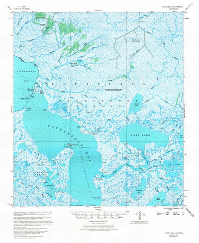 A 1957 historical topographic map of Lake Decade in Louisiana produced by the United States Geological Survey (USGS). It shows contour lines, place names, water bodies and roads. Map services and data available from U.S. Geological Survey, National Geospatial Program. Map was obtained from https:...