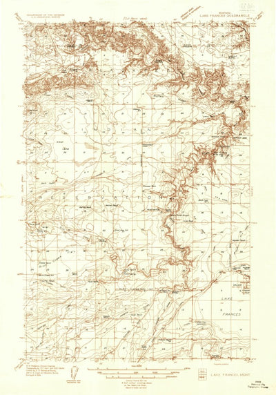 A 1934 historical topographic map of Lake Frances in Montana produced by the United States Geological Survey (USGS). It shows contour lines, place names, water bodies and roads. Map services and data available from U.S. Geological Survey, National Geospatial Program. Map was obtained from https:/...