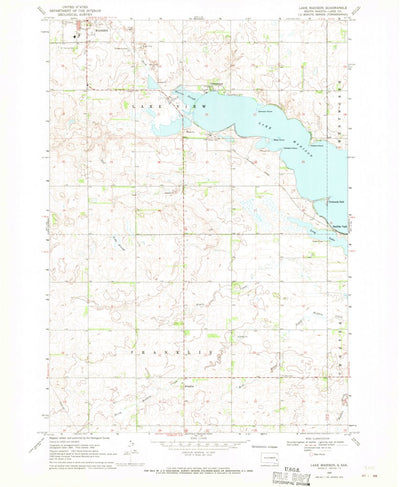 A 1968 historical topographic map of Lake Madison in South Dakota produced by the United States Geological Survey (USGS). It shows contour lines, place names, water bodies and roads. Map services and data available from U.S. Geological Survey, National Geospatial Program. Map was obtained from ht...