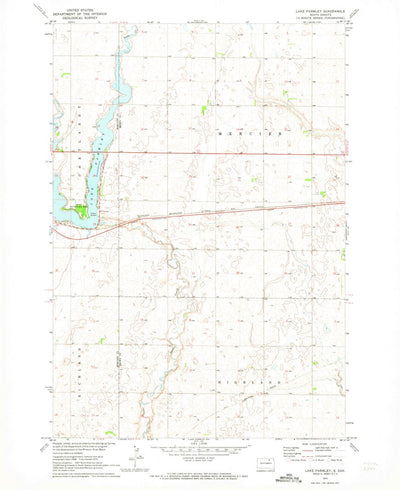 A 1970 historical topographic map of Lake Parmley in South Dakota produced by the United States Geological Survey (USGS). It shows contour lines, place names, water bodies and roads. Map services and data available from U.S. Geological Survey, National Geospatial Program. Map was obtained from ht...