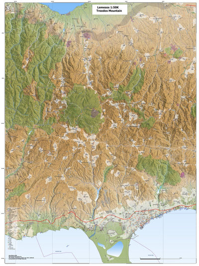 The digital Map of Lemesos District in scale 1:50K including troodos Mountain and Pafos Forest, published by Geometriki Ltd the leading cartographic company in Cyprus.