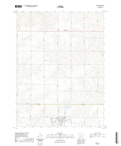 A digital topographic map of Lenox in Iowa produced by the United States Geological Survey (USGS) in 2022. The map is part of the National Map series of 7.5 minute quadrangle maps. It shows contour lines, place names, water bodies and roads. Map services and data available from U.S. Geological Su...