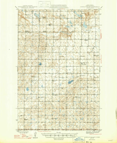 A 1947 historical topographic map of Lincoln Valley in North Dakota produced by the United States Geological Survey (USGS). It shows contour lines, place names, water bodies and roads. Map services and data available from U.S. Geological Survey, National Geospatial Program. Map was obtained from ...