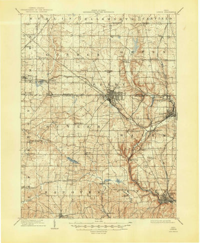 A 1909 historical topographic map of Lisbon in Ohio produced by the United States Geological Survey (USGS). It shows contour lines, place names, water bodies and roads. Map services and data available from U.S. Geological Survey, National Geospatial Program. Map was obtained from https://www.scie...