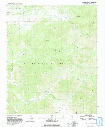 A 1991 historical topographic map of Lockwood Valley in California produced by the United States Geological Survey (USGS). It shows contour lines, place names, water bodies and roads. Map services and data available from U.S. Geological Survey, National Geospatial Program. Map was obtained from h...