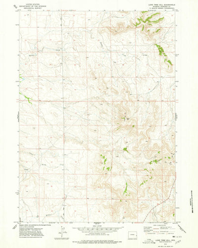A 1974 historical topographic map of Lone Tree Hill in Wyoming produced by the United States Geological Survey (USGS). It shows contour lines, place names, water bodies and roads. Map services and data available from U.S. Geological Survey, National Geospatial Program. Map was obtained from https...