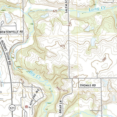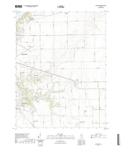 A digital topographic map of Long Creek in Illinois produced by the United States Geological Survey (USGS) in 2021. The map is part of the National Map series of 7.5 minute quadrangle maps. It shows contour lines, place names, water bodies and roads. Map services and data available from U.S. Geol...