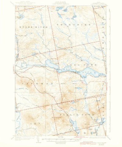 A 1924 historical topographic map of Long Pond in Maine produced by the United States Geological Survey (USGS). It shows contour lines, place names, water bodies and roads. Map services and data available from U.S. Geological Survey, National Geospatial Program. Map was obtained from https://www....
