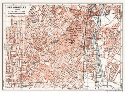 Old vintage map of Los Angeles from 1909, located in United States of America, produced by Wagner & Debes, at the scale of 1:40,000. This digitally re-mastered image is a part of the Discus Media 1900 Collection.