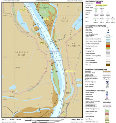 The maps presented here were developed with data provided by the U.S. Army Corps of Engineers. The 2015 Navigation Chart has been designed to promote safe navigation for both deep-draft and shallow-draft vessels up and down the Lower Mississippi River, Gulf of Mexico to Ciaro, IL.