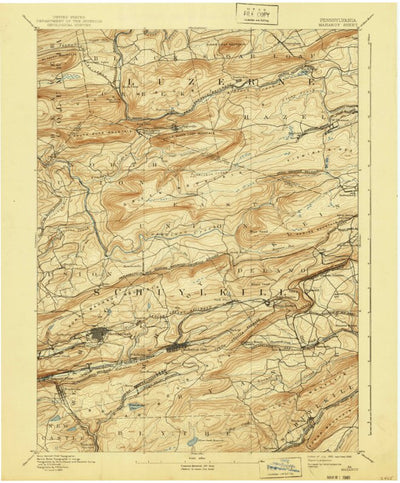 A 1893 historical topographic map of Mahanoy in Pennsylvania produced by the United States Geological Survey (USGS). It shows contour lines, place names, water bodies and roads. Map services and data available from U.S. Geological Survey, National Geospatial Program. Map was obtained from https:/...