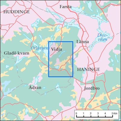 Promenad- och vandringskarta i skala 1:25000. En rundslinga på 9 km vid Lissma är föreslagen.