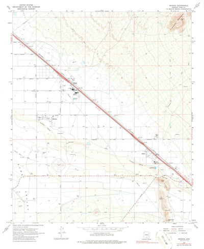 A 1967 historical topographic map of Marana in Arizona produced by the United States Geological Survey (USGS). It shows contour lines, place names, water bodies and roads. Map services and data available from U.S. Geological Survey, National Geospatial Program. Map was obtained from https://www.s...
