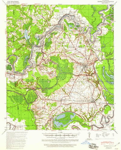 A 1940 historical topographic map of Marksville in Louisiana produced by the United States Geological Survey (USGS). It shows contour lines, place names, water bodies and roads. Map services and data available from U.S. Geological Survey, National Geospatial Program. Map was obtained from https:/...