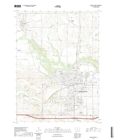 A digital topographic map of Marshalltown in Iowa produced by the United States Geological Survey (USGS) in 2022. The map is part of the National Map series of 7.5 minute quadrangle maps. It shows contour lines, place names, water bodies and roads. Map services and data available from U.S. Geolog...
