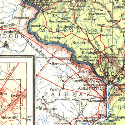 Published in February 1927, the Maryland, Delaware and District of Columbia map contains detailed insets of the cities of Baltimore, Wilmington, and Washington. The weight of type used for names gives a clue to the population of the cities at the time.