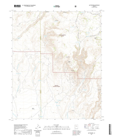 A digital topographic map of Matterhorn in Arizona produced by the United States Geological Survey (USGS) in 2021. The map is part of the National Map series of 7.5 minute quadrangle maps. It shows contour lines, place names, water bodies and roads. Map services and data available from U.S. Geolo...