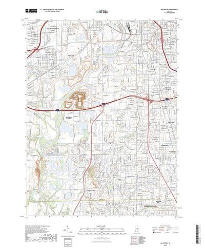 A digital topographic map of Maywood in Indiana produced by the United States Geological Survey (USGS) in 2022. The map is part of the National Map series of 7.5 minute quadrangle maps. It shows contour lines, place names, water bodies and roads. Map services and data available from U.S. Geologic...