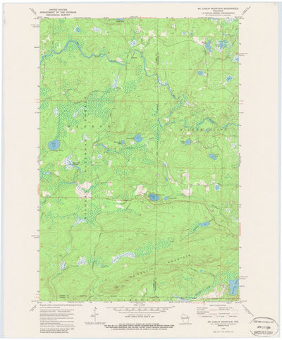 A 1972 historical topographic map of Mccaslin Mountain in Wisconsin produced by the United States Geological Survey (USGS). It shows contour lines, place names, water bodies and roads. Map services and data available from U.S. Geological Survey, National Geospatial Program. Map was obtained from ...