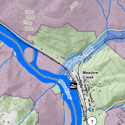 This map was produced using USGS 7.5-minute quadrangles. The maps shows locations of public lands including, but not limited to national forests, state forests, wildlife management areas, and county/city parks in the Meadow Creek quadrangle. The map also shows West Virginia Division of Natural Re...