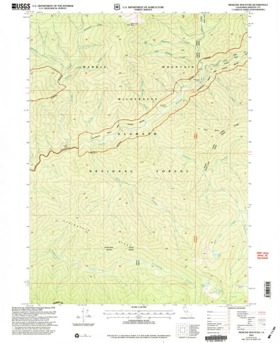 A 2001 historical topographic map of Medicine Lake in California produced by the United States Geological Survey (USGS). It shows contour lines, place names, water bodies and roads. Map services and data available from U.S. Geological Survey, National Geospatial Program. Map was obtained from htt...