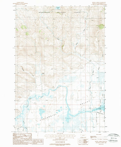 A 1988 historical topographic map of Metzel Creek in Montana produced by the United States Geological Survey (USGS). It shows contour lines, place names, water bodies and roads. Map services and data available from U.S. Geological Survey, National Geospatial Program. Map was obtained from https:/...