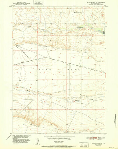 A 1951 historical topographic map of Mexican Pass SE in Wyoming produced by the United States Geological Survey (USGS). It shows contour lines, place names, water bodies and roads. Map services and data available from U.S. Geological Survey, National Geospatial Program. Map was obtained from http...