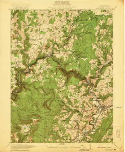 A 1921 historical topographic map of Meyersdale in Pennsylvania produced by the United States Geological Survey (USGS). It shows contour lines, place names, water bodies and roads. Map services and data available from U.S. Geological Survey, National Geospatial Program. Map was obtained from http...