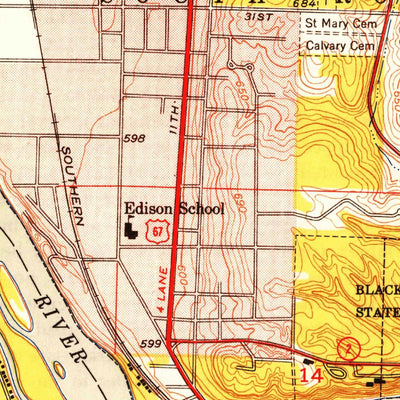 A 1950 historical topographic map of Milan in Illinois produced by the United States Geological Survey (USGS). It shows contour lines, place names, water bodies and roads. Map services and data available from U.S. Geological Survey, National Geospatial Program. Map was obtained from https://www.s...