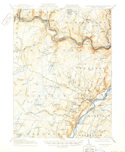 A 1915 historical topographic map of Milford in Pennsylvania produced by the United States Geological Survey (USGS). It shows contour lines, place names, water bodies and roads. Map services and data available from U.S. Geological Survey, National Geospatial Program. Map was obtained from https:/...