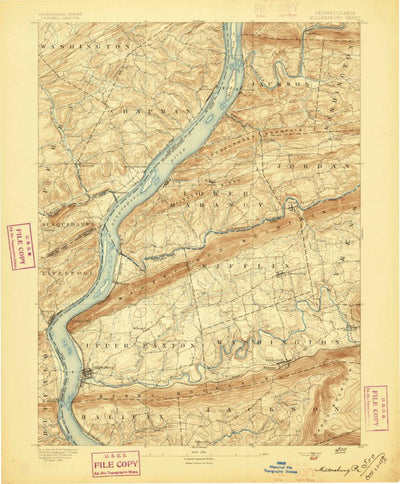 A 1893 historical topographic map of Millersburg in Pennsylvania produced by the United States Geological Survey (USGS). It shows contour lines, place names, water bodies and roads. Map services and data available from U.S. Geological Survey, National Geospatial Program. Map was obtained from htt...