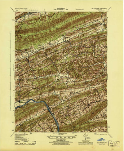 A 1943 historical topographic map of Millerstown in Pennsylvania produced by the United States Geological Survey (USGS). It shows contour lines, place names, water bodies and roads. Map services and data available from U.S. Geological Survey, National Geospatial Program. Map was obtained from htt...