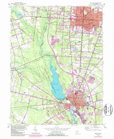 A 1953 historical topographic map of Millville in New Jersey produced by the United States Geological Survey (USGS). It shows contour lines, place names, water bodies and roads. Map services and data available from U.S. Geological Survey, National Geospatial Program. Map was obtained from https:/...