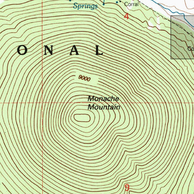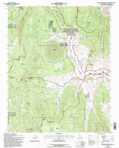 A 1994 historical topographic map of Monache Mountain in California produced by the United States Geological Survey (USGS). It shows contour lines, place names, water bodies and roads. Map services and data available from U.S. Geological Survey, National Geospatial Program. Map was obtained from ...