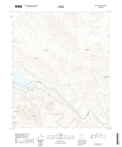 A digital topographic map of Monkeys Head in Arizona produced by the United States Geological Survey (USGS) in 2021. The map is part of the National Map series of 7.5 minute quadrangle maps. It shows contour lines, place names, water bodies and roads. Map services and data available from U.S. Geo...