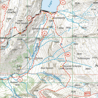 Monte Rosa Est, Valle di Gressoney and Alagna Valsesia hiking map at a 1:25.000 scale with a WGS84 grid (1km). All data has been gathered by walking each route with a GPS device.