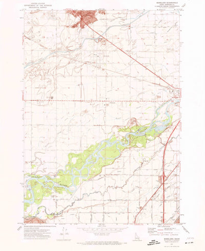 A 1971 historical topographic map of Moreland in Idaho produced by the United States Geological Survey (USGS). It shows contour lines, place names, water bodies and roads. Map services and data available from U.S. Geological Survey, National Geospatial Program. Map was obtained from https://www.s...