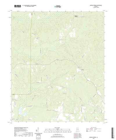 A digital topographic map of Morgan Springs in Alabama produced by the United States Geological Survey (USGS) in 2020. The map is part of the National Map series of 7.5 minute quadrangle maps. It shows contour lines, place names, water bodies and roads. Map services and data available from U.S. G...