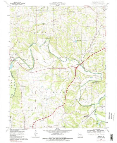 A 1969 historical topographic map of Moselle in Missouri produced by the United States Geological Survey (USGS). It shows contour lines, place names, water bodies and roads. Map services and data available from U.S. Geological Survey, National Geospatial Program. Map was obtained from https://www...