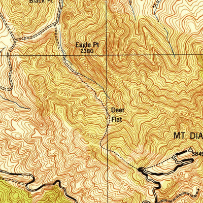 A 1943 historical topographic map of Mount Diablo in California produced by the United States Geological Survey (USGS). It shows contour lines, place names, water bodies and roads. Map services and data available from U.S. Geological Survey, National Geospatial Program. Map was obtained from http...