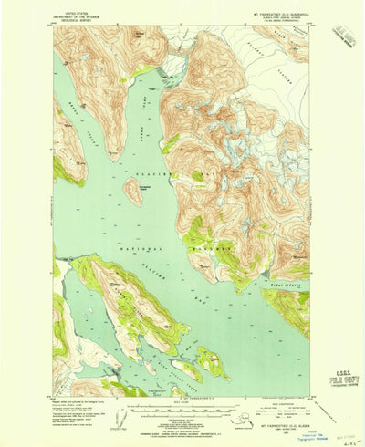 A 1950 historical topographic map of Mount Fairweather D-2 in Alaska produced by the United States Geological Survey (USGS). It shows contour lines, place names, water bodies and roads. Map services and data available from U.S. Geological Survey, National Geospatial Program. Map was obtained from...