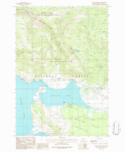 A 1986 historical topographic map of Mount Hebgen in Montana produced by the United States Geological Survey (USGS). It shows contour lines, place names, water bodies and roads. Map services and data available from U.S. Geological Survey, National Geospatial Program. Map was obtained from https:/...