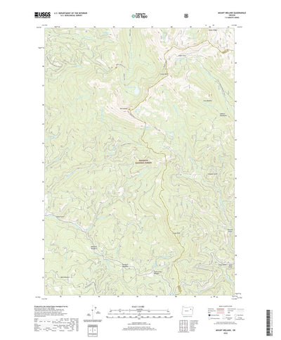 A digital topographic map of Mount Ireland in Oregon produced by the United States Geological Survey (USGS) in 2020. The map is part of the National Map series of 7.5 minute quadrangle maps. It shows contour lines, place names, water bodies and roads. Map services and data available from U.S. Geo...