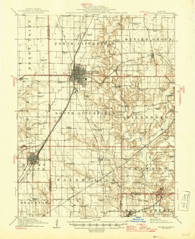 A 1915 historical topographic map of Mount Olive in Illinois produced by the United States Geological Survey (USGS). It shows contour lines, place names, water bodies and roads. Map services and data available from U.S. Geological Survey, National Geospatial Program. Map was obtained from https:/...