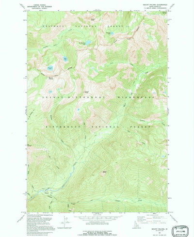 A 1991 historical topographic map of Mount Paloma in Idaho produced by the United States Geological Survey (USGS). It shows contour lines, place names, water bodies and roads. Map services and data available from U.S. Geological Survey, National Geospatial Program. Map was obtained from https://w...