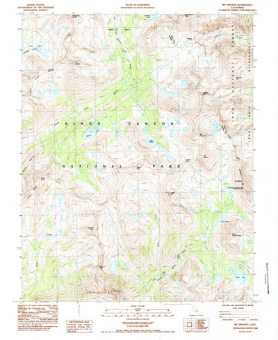 A 1985 historical topographic map of Mount Pinchot in California produced by the United States Geological Survey (USGS). It shows contour lines, place names, water bodies and roads. Map services and data available from U.S. Geological Survey, National Geospatial Program. Map was obtained from htt...