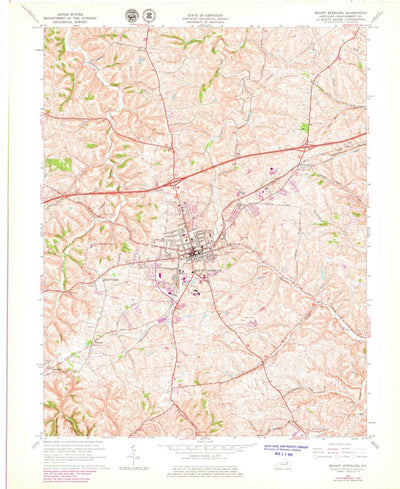 A 1965 historical topographic map of Mount Sterling in Kentucky produced by the United States Geological Survey (USGS). It shows contour lines, place names, water bodies and roads. Map services and data available from U.S. Geological Survey, National Geospatial Program. Map was obtained from http...